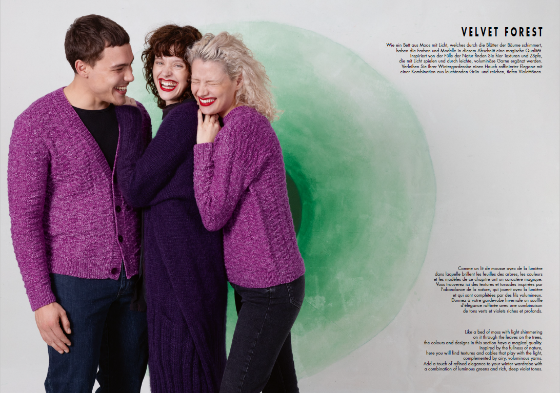 Voici quelques modèles de la collection “velvet forest”, dont vous pourrez trouver les explications dans le catalogue Lang Yarns FAM Collection 282 :