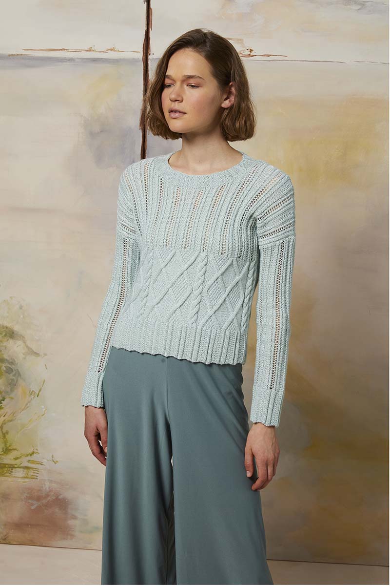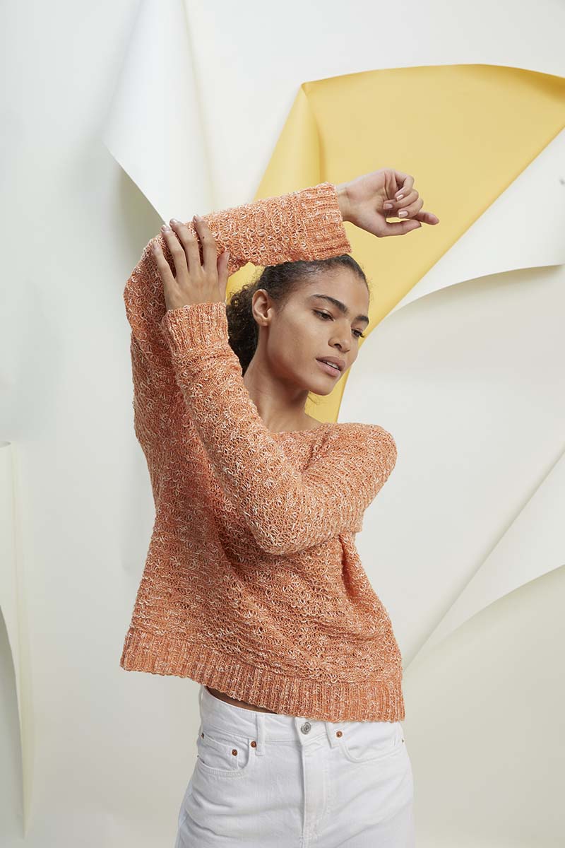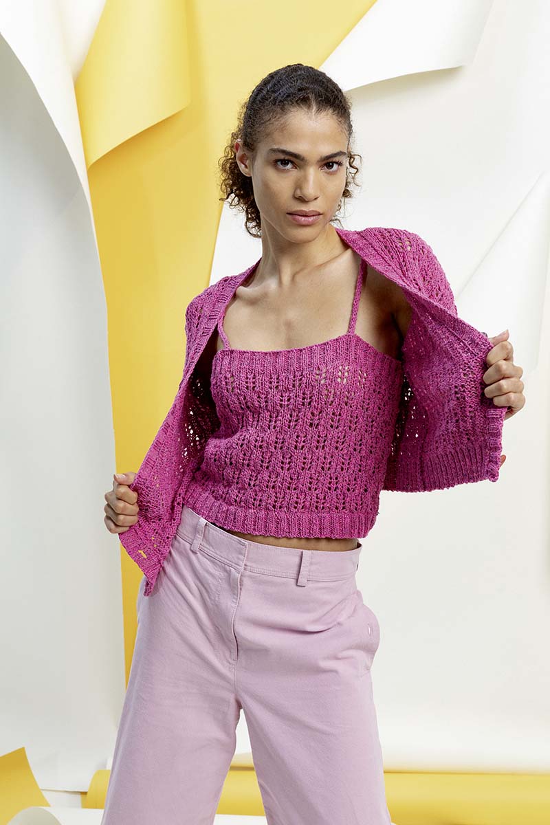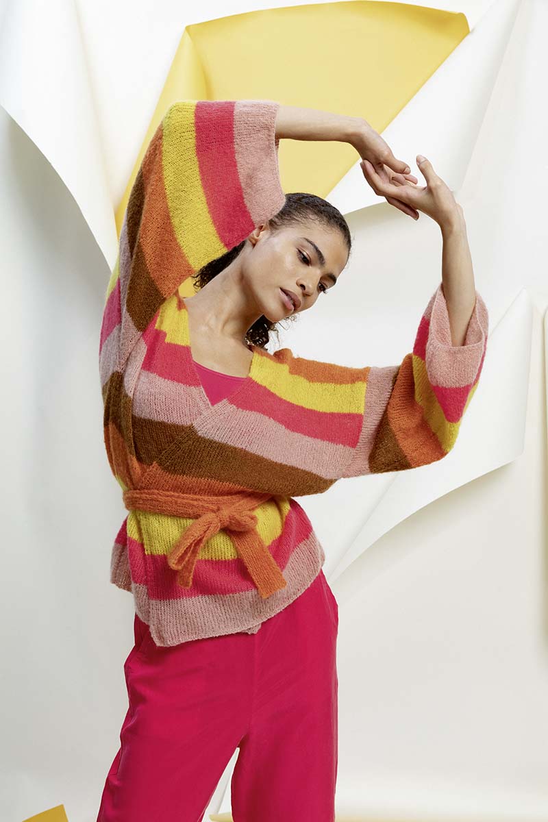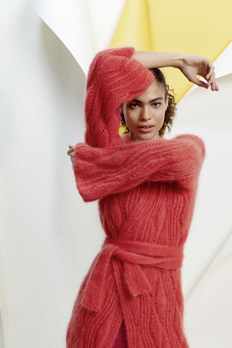 Une palette qui vous fait plonger dans un grand bain de couleurs. Laissez-vous séduire par le violet, portez ces doux tons de lilas et fondez pour les couleurs de couchers de soleil. Pas besoin de couleurs sucrées ni criardes pour rayonner. De magnifiques tricots légers vont vous emmener faire un voyage époustouflant. De superbes structures sont entrelacées et viennent sans cesse former d‘intrigants effets.