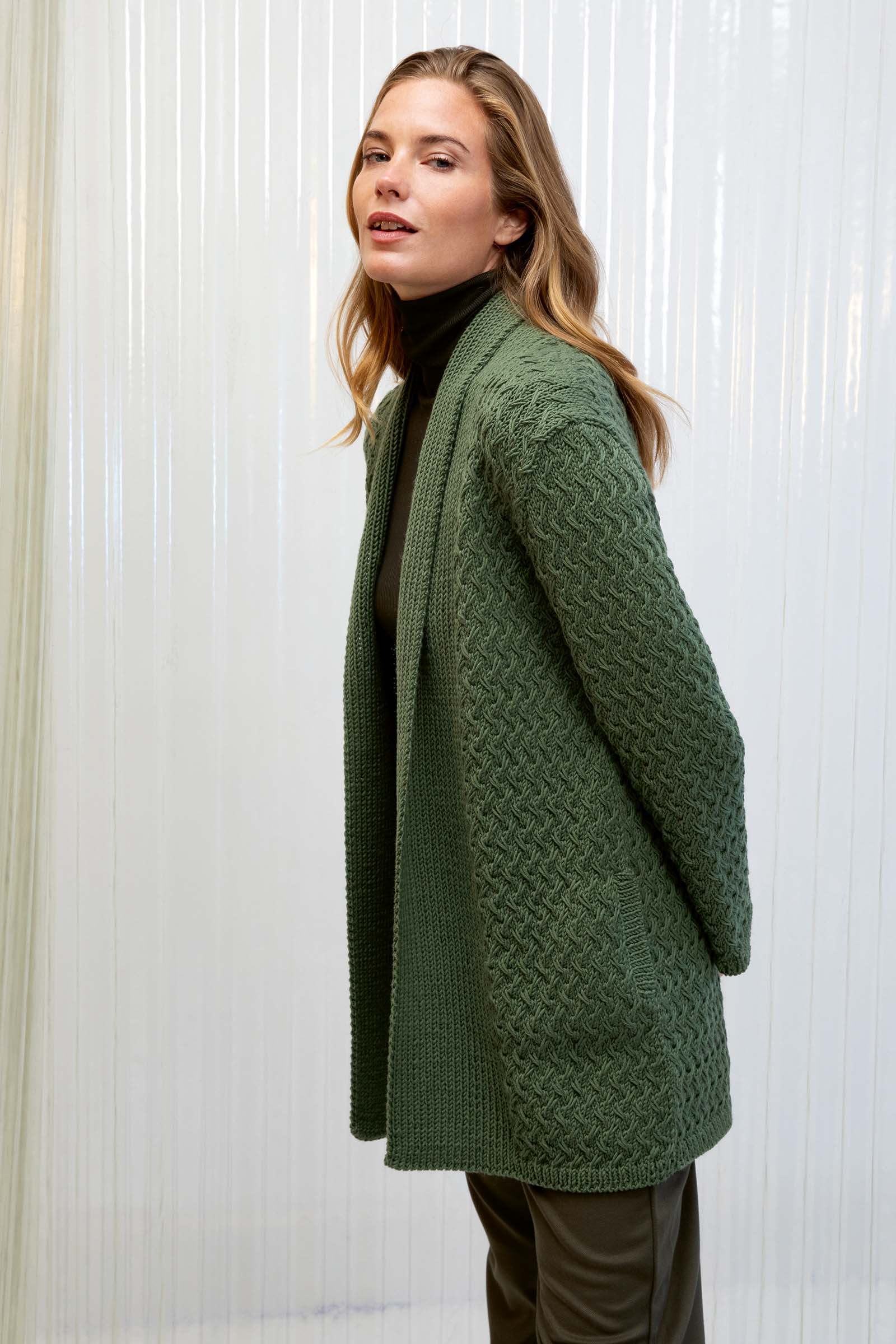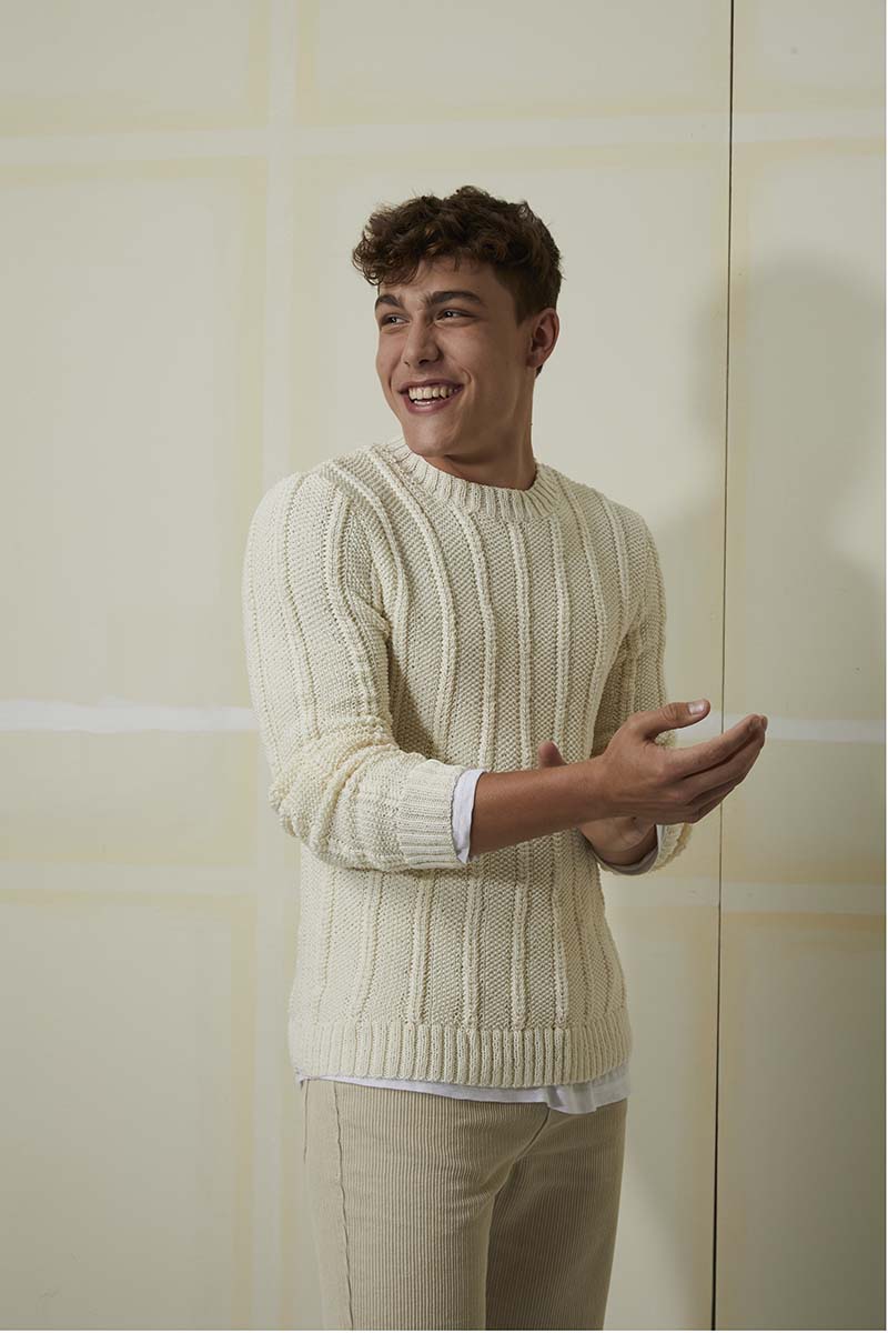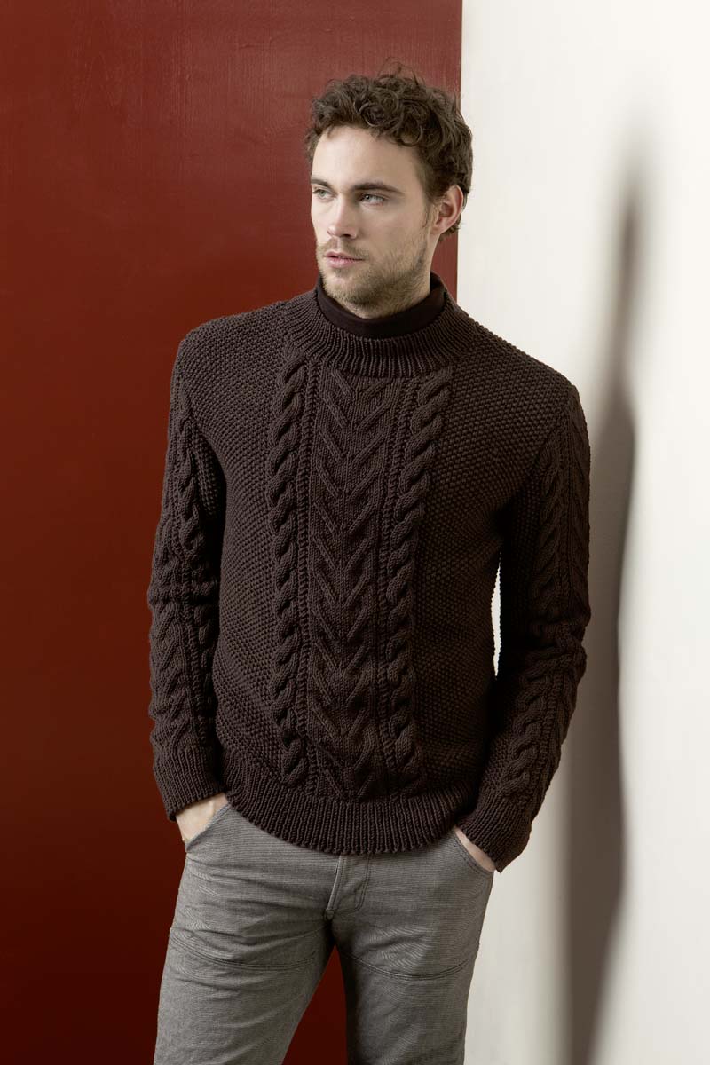- Pull à torsades en laine Merino 150 et Lace de Lang Yarns