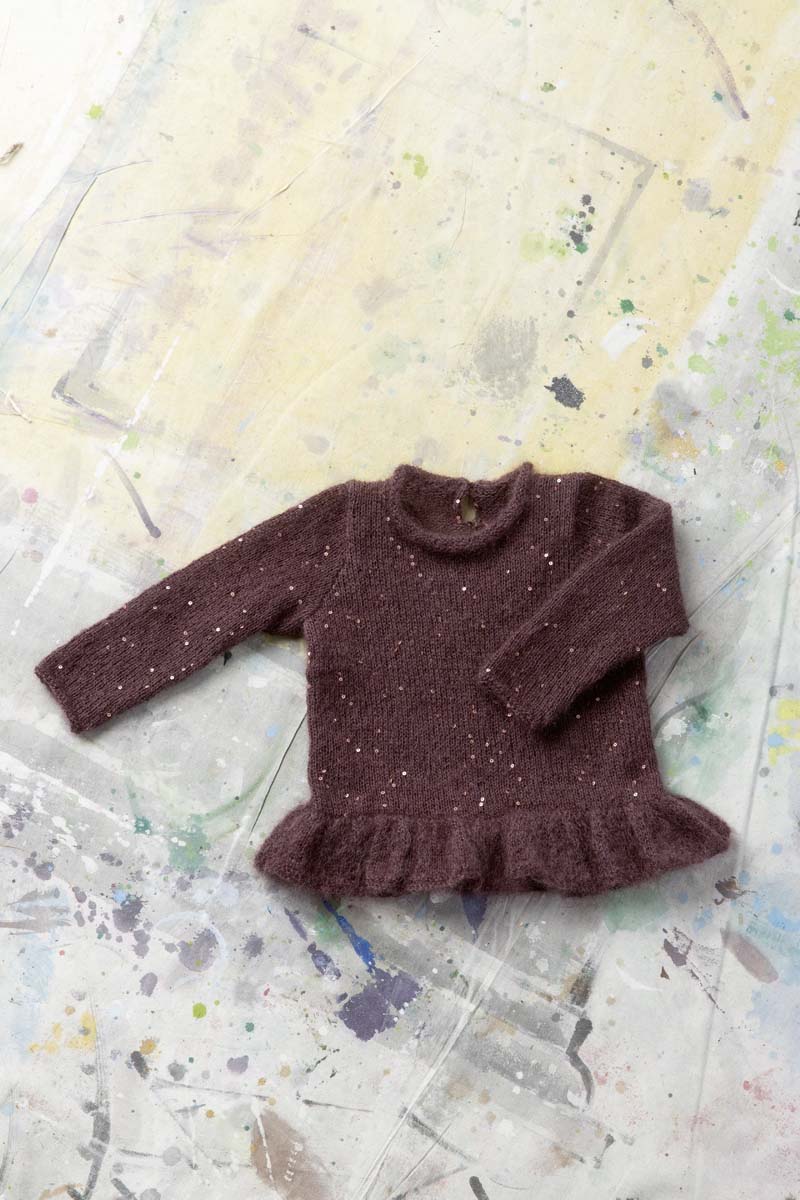 22. Pull Wiebke et gilet Daphné en laine Delizia et Paillettes de Lang Yarns