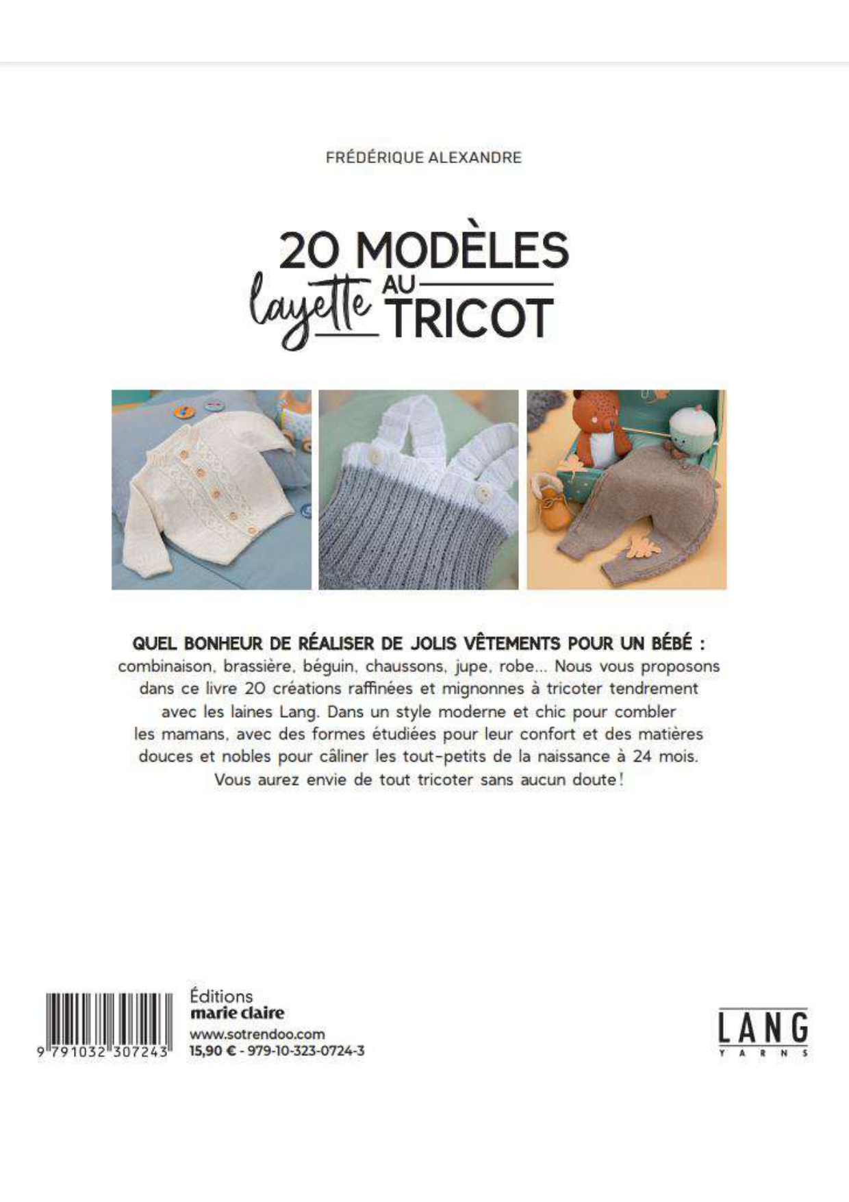 - Livre Je tricote une jolie layette de Frédérique Alexandre, laines Lang Yarns, Editions Marie Claire