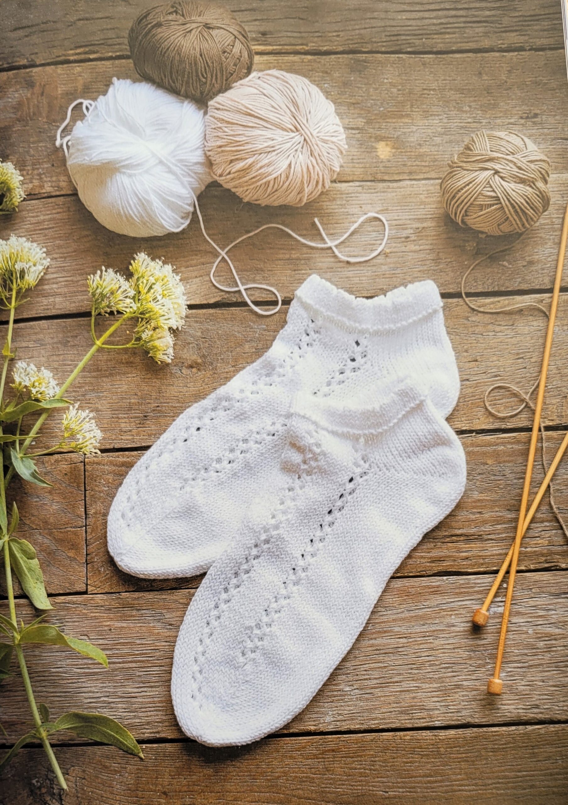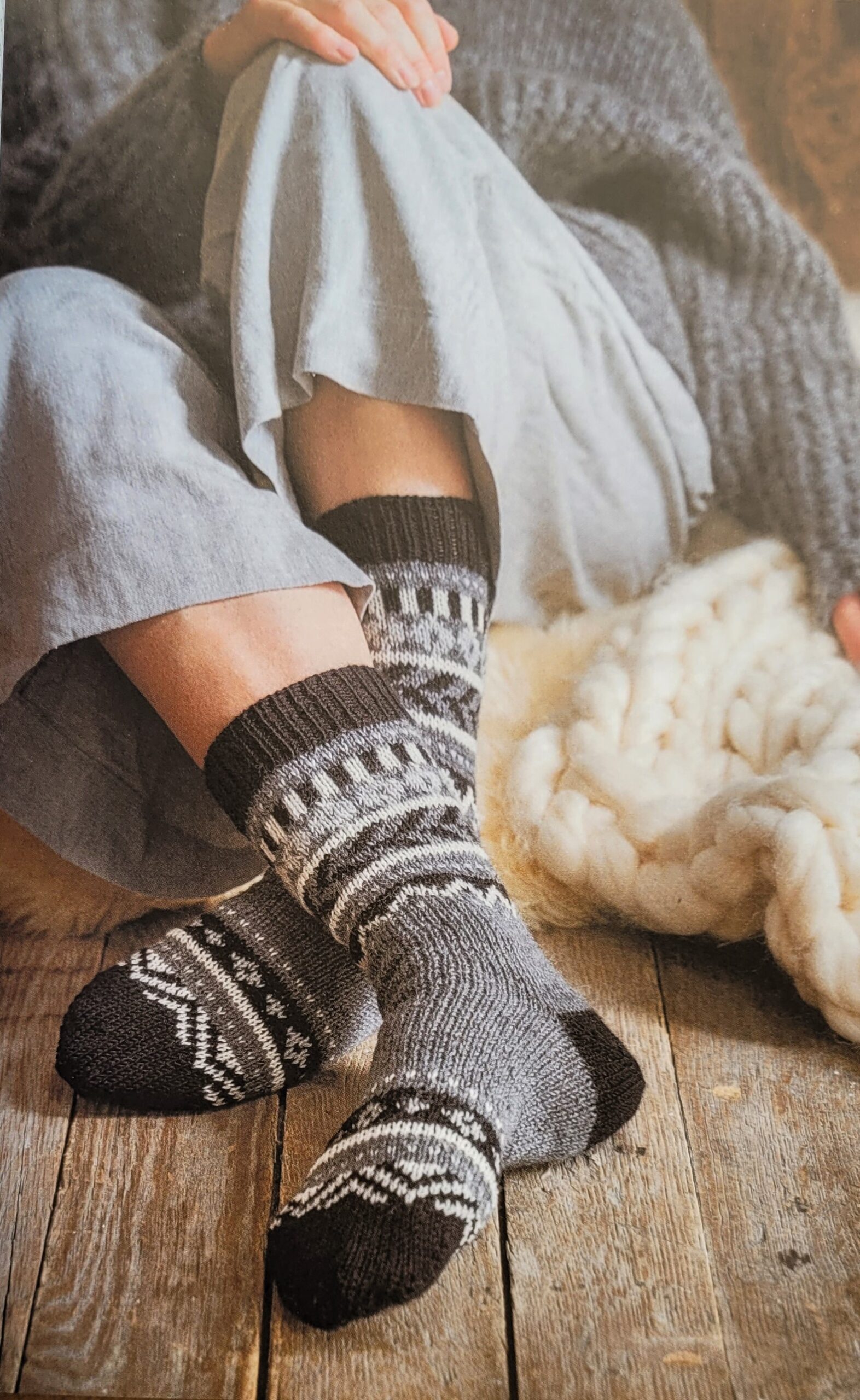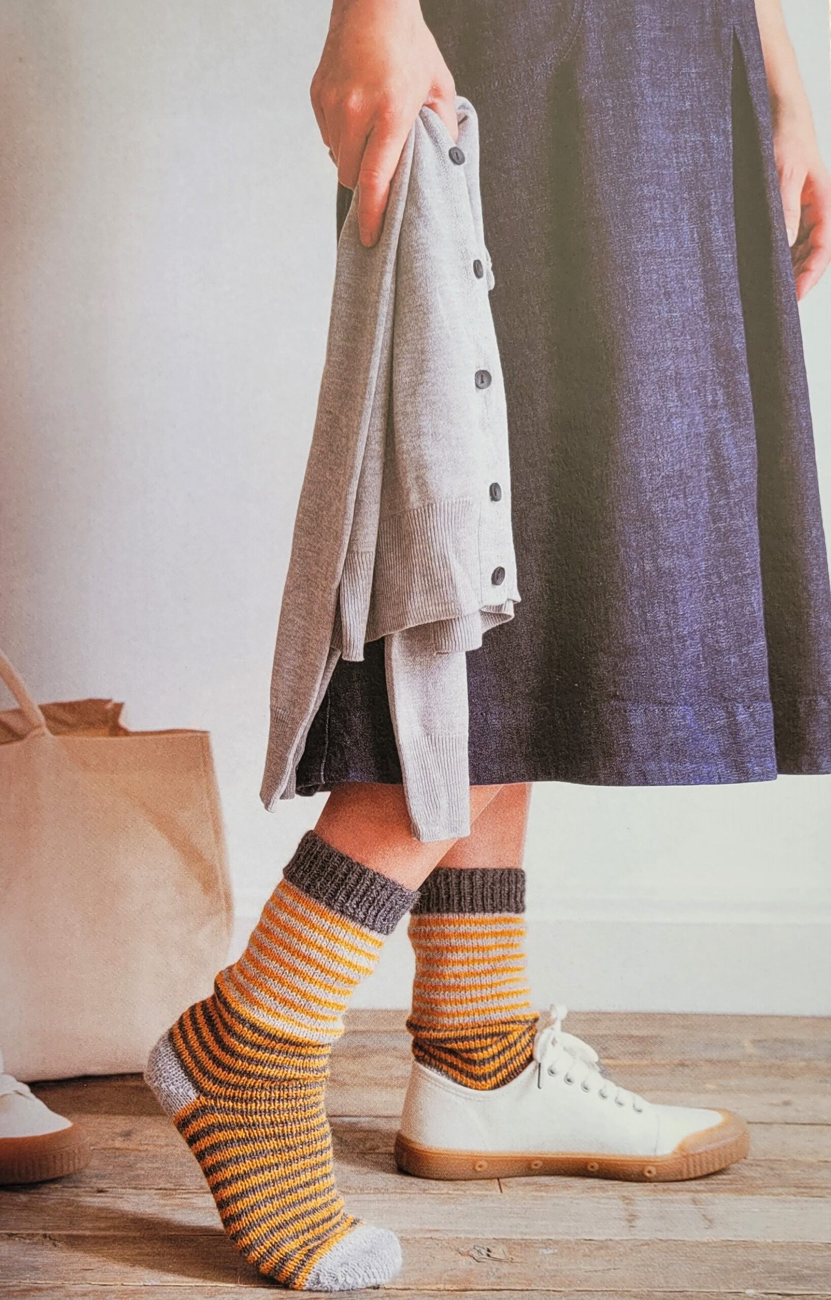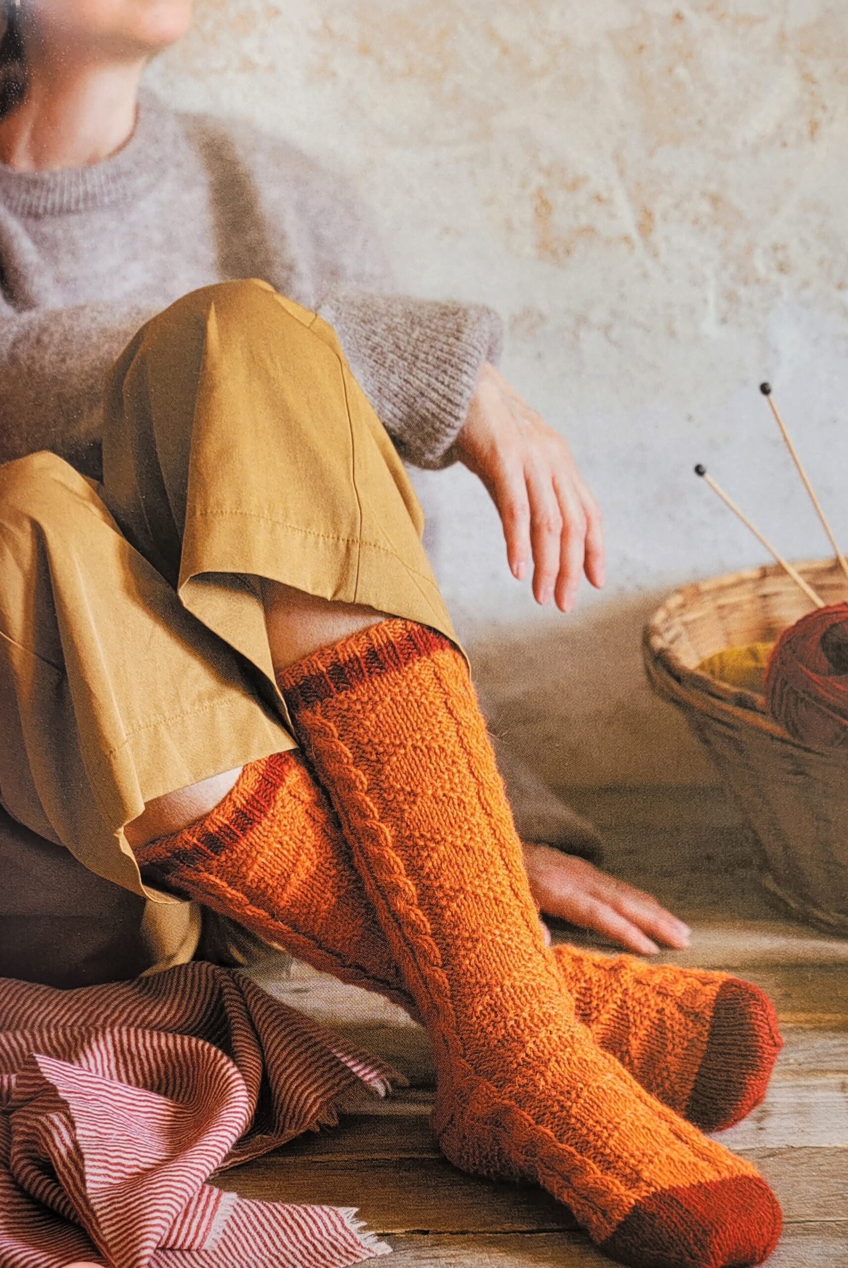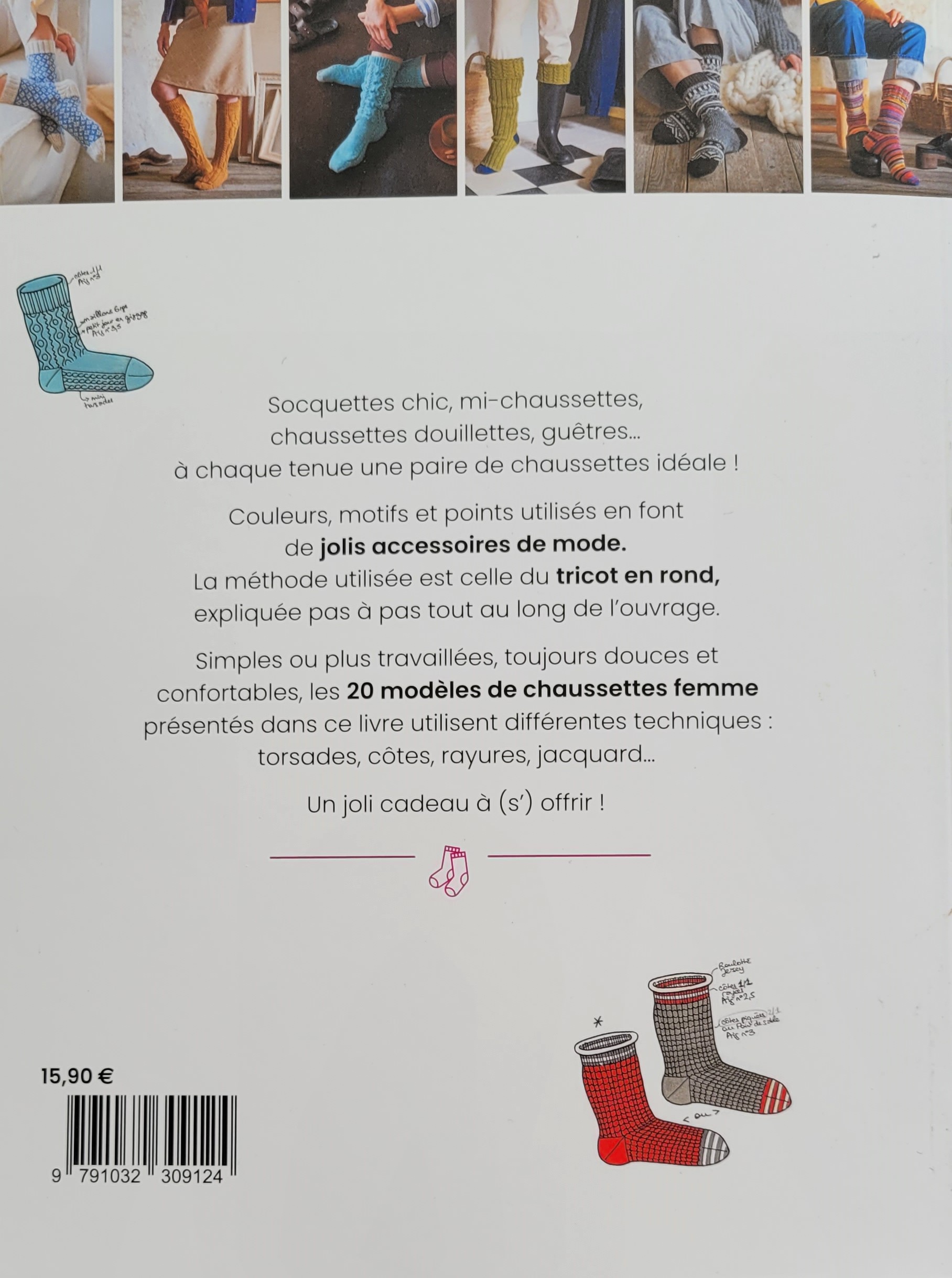 « Socquettes chic, mi-chaussettes, chaussettes douillettes, guêtres… à chaque tenue une paire de chaussettes idéale ! Couleurs, motifs et points utilisés en font de jolis accessoires de mode. la méthode utilisée est celle du tricot en rond, expliquée pas à pas tout au long de l’ouvrage. Simples ou plus travaillées, toujours douces et confortables, les 20 modèles de chaussettes femme présentés dans ce livre utilisent différentes techniques : torsades, côtes, rayures, jacquard… Un joli cadeau à s’offrir ! »