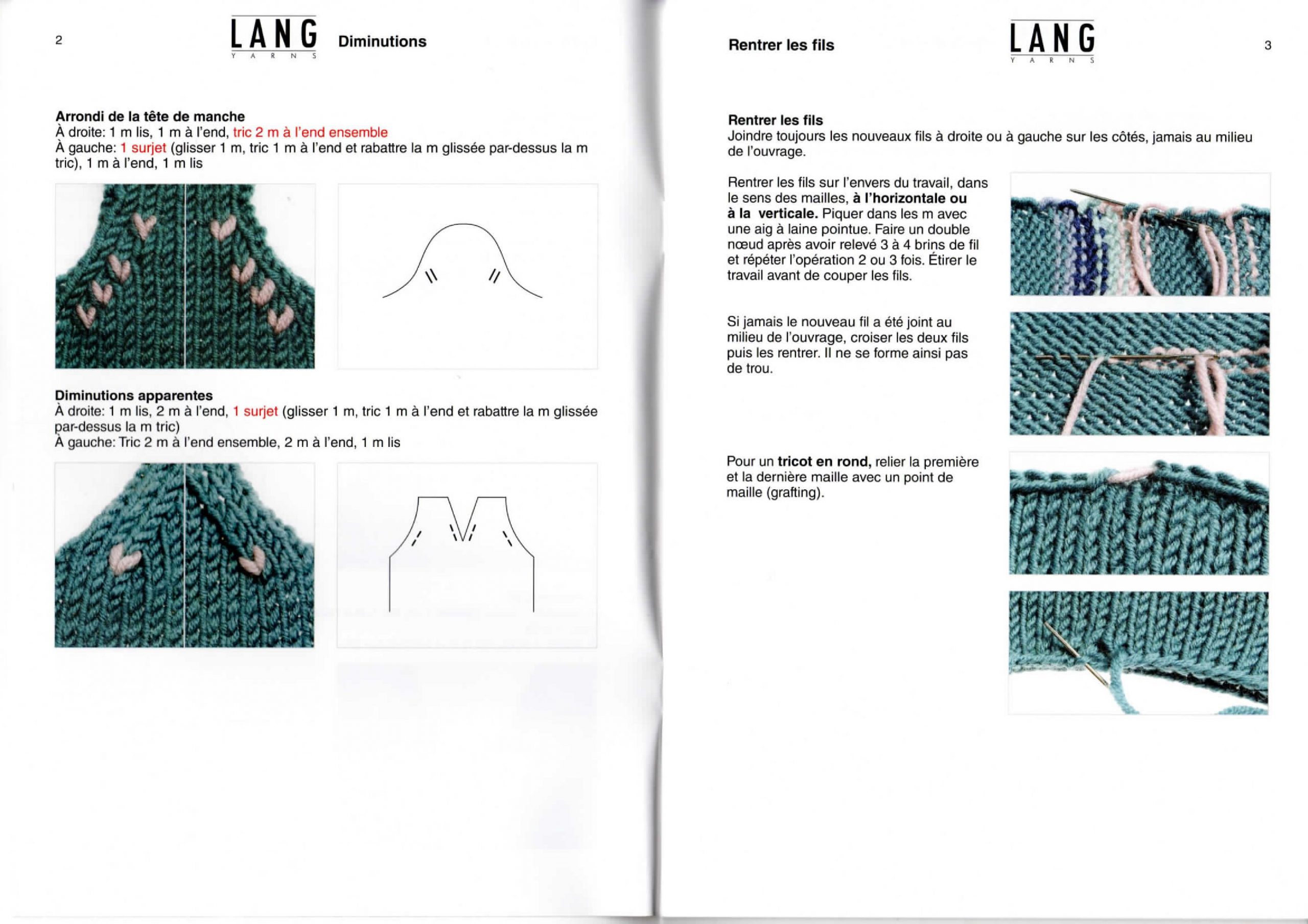 Le tricot, ça vous tente bien mais comment faire quand on n’a jamais appris et personne autour de vous pour vous enseigner ? Débutant(e) avec une réelle envie d’apprendre, ce livre de la marque Lang Yarns, fabricant de laines à tricoter Suisse, est fait pour vous. Apprenez les bases de finition essentielles pour terminer votre ouvrage grâce à ce livre tricot pour débutant(e): les diminutions, rentrer des fils, faire les coutures, relever des mailles, effectuer les bordures d’encolures, les encolures, les pattes de fermeture, les boutonnières, faire une ceinture, des poches et assembler les manches au corps.