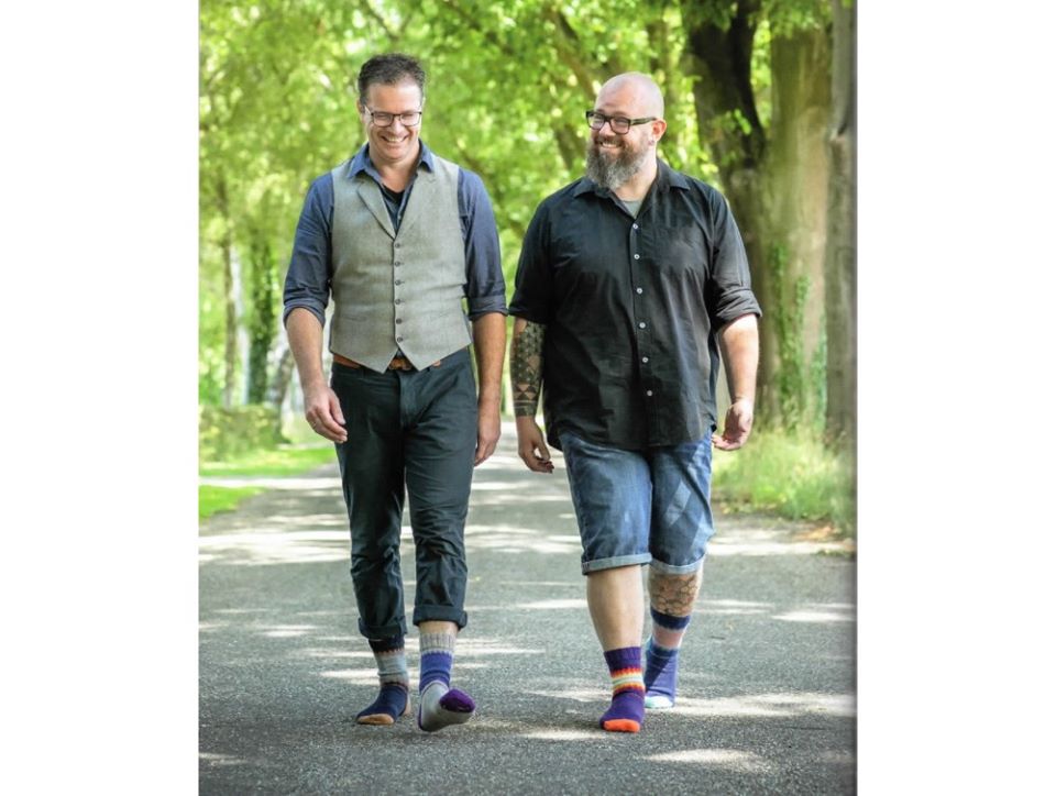 Pour tricoter ces belles chaussettes, le duo d’hommes a utilisé les laines de la marque Suisse Lang Yarns: