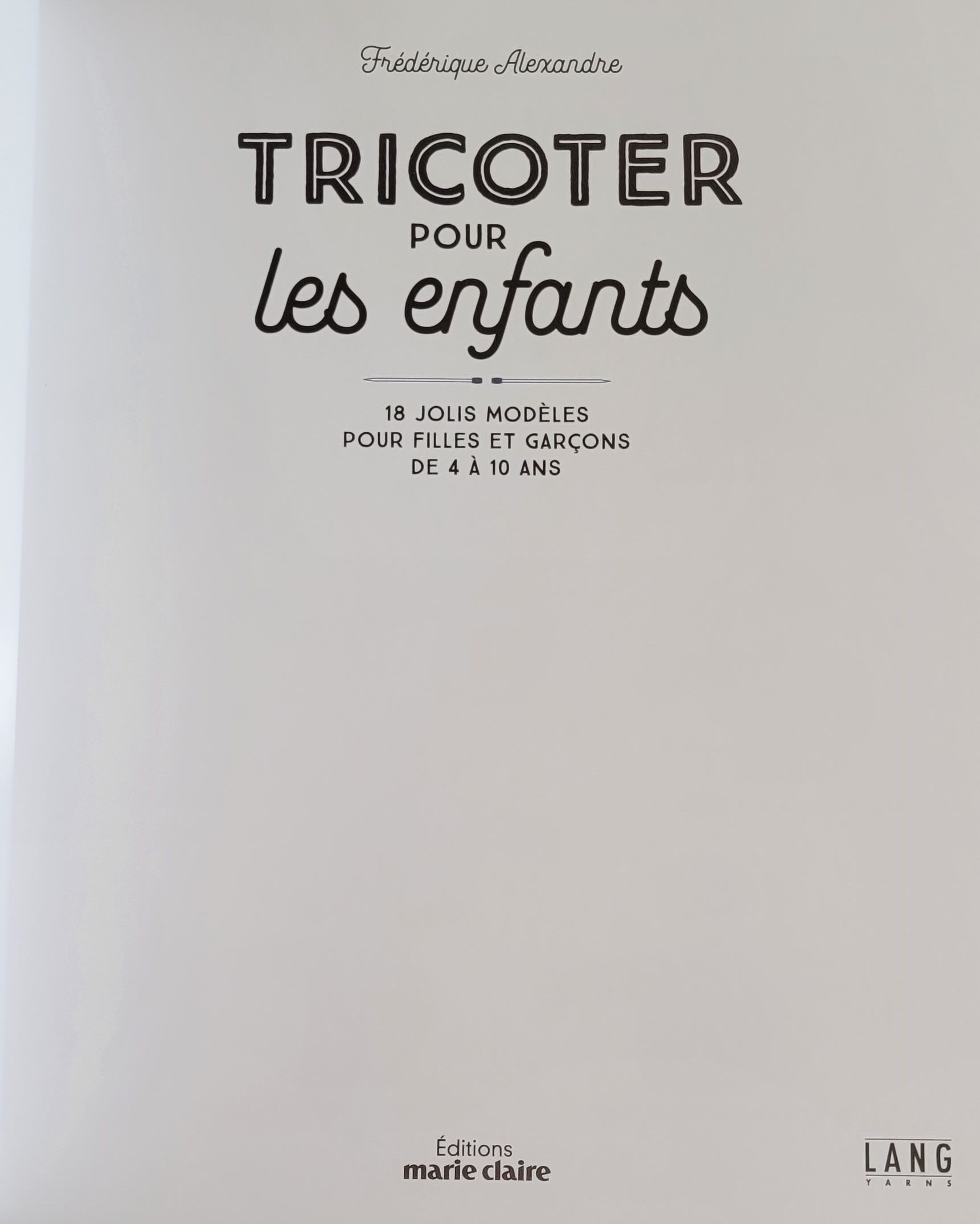 2 commentaires : “Livre Tricoter pour les enfants de Frédérique Alexandre, laines Lang Yarns, Editions Marie Claire