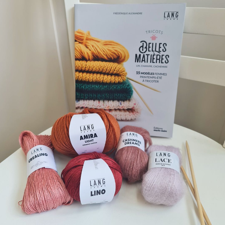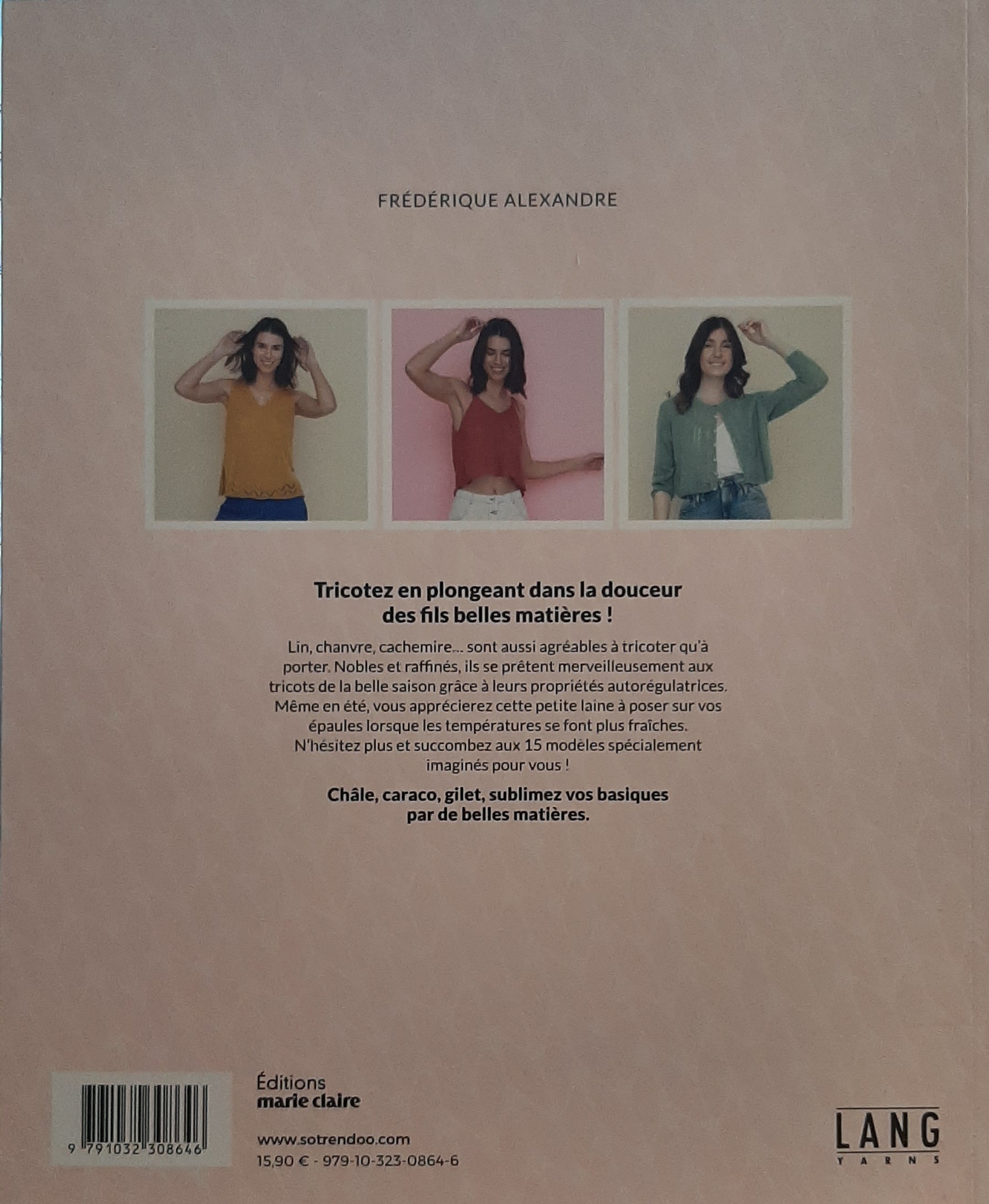 Après la parution du 📘 Livre 20 modèles de layette au tricot et du 📘 Livre 20 modèles adorables de layette au tricot en 2022, l’autrice 🙋‍♀️ Frédérique Alexandre, sort son nouvel opus en 2023 pour la saison Printemps Eté 🌞 : le livre Tricots Belles Matières confectionnés avec des fils nobles et de qualité Lang Yarns 🇨🇭 : soie, cachemire , mohair, coton et lin. Vous allez adorer ces 15 modèles pour femmes tricotés avec de jolis fils aussi agréables à tricoter qu’à porter. 🧶 Nobles et raffinés, ils se prêtent merveilleusement aux tricots de la belle saison grâce à leurs propriétés autorégulatrices. Nous vous faisons découvrir sans plus attendre vos prochains ouvrages… 😊