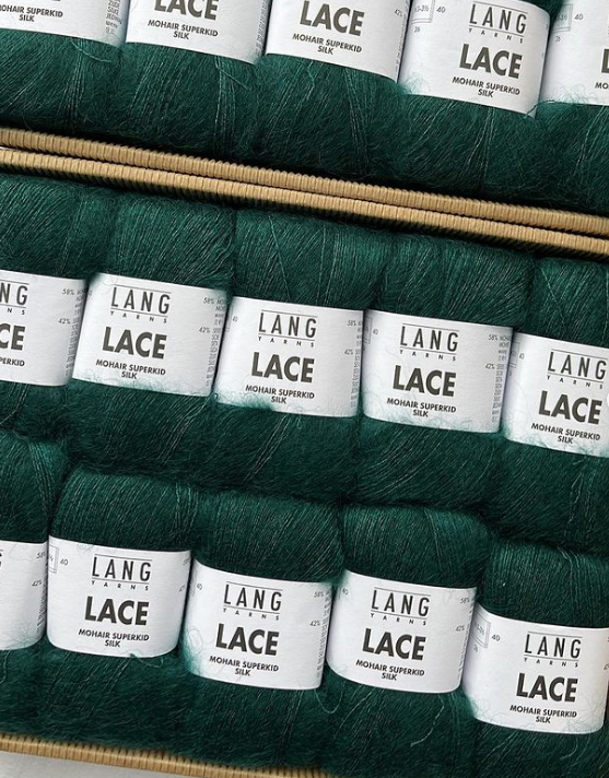 Pour un pull femme taille 40, comptez environ 4 pelotes de Lace de Lang Yarns, 3 pelotes pour un pull enfant taille 10 ans.