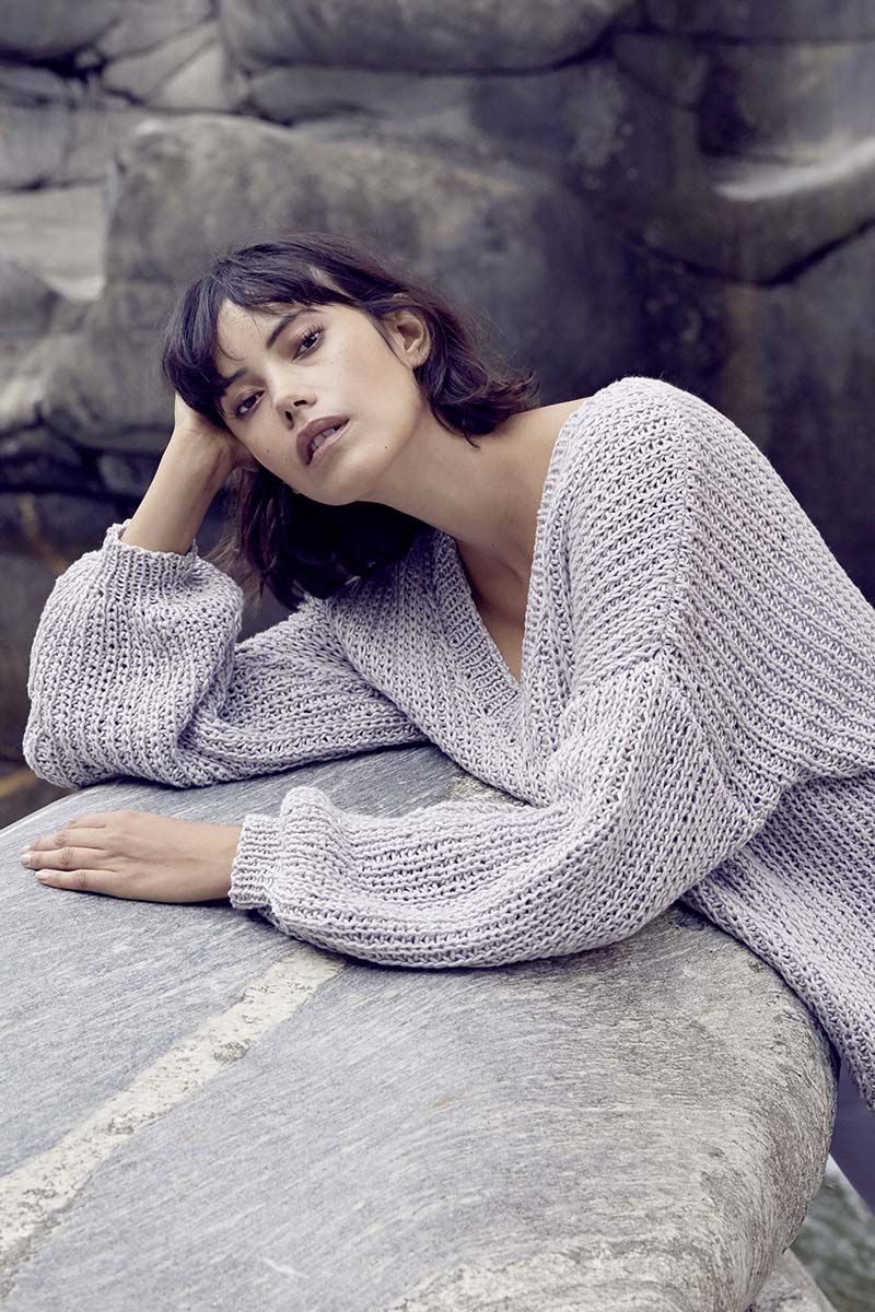 Vous trouverez ce modèle « Fool’s Paradise » n° 200-002-001 dans le catalogue Wooladdicts n°2. Ce pull pour femme à encolure V se tricote avec le point de demi-côte Anglaise. L’encolure V se fait à 38 cm de hauteur du montage. Les manches sont tombantes. Je vous invite à télécharger le PDF de ce modèle gratuit pull femme ici: