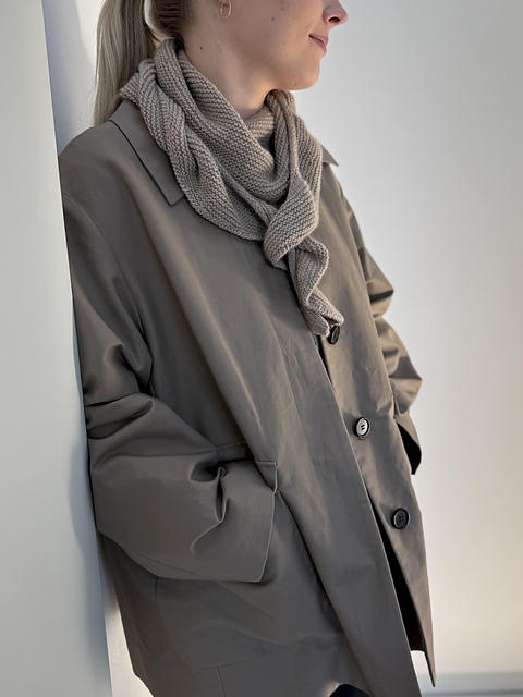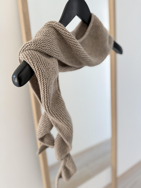 MY WAVE SCARF est une écharpe féminine et étroite, avec des extrémités souples et fluides qui créent de jolis volants. L’écharpe se tricote au point mousse de haut en bas. On commence par des augmentations le long du bord supérieur, puis les côtés sont progressivement façonnés grâce à des rangs raccourcis. Les bords sont finis avec des cordons I-cord.