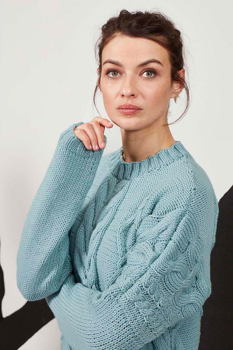 💙 Ce pull à torsades pour femme, coloris bleu turquoise, est le modèle 👕 n°59 du 📘 catalogue Lang Yarns FAM 269 Collection , initialement tricoté en 🧶 laine Merino 70. Un must-have à avoir pour l’hiver 😍, ce pull irlandais très chaud et doux a été réalisé en laines Lace et Merino 150 de la même marque. Vous avez envie de le réaliser, que ce soit dans ce coloris ou un autre ? 🌈 On vous explique ici tous les secrets de ce fabuleux pull, à porter, sans modération ! 🤓