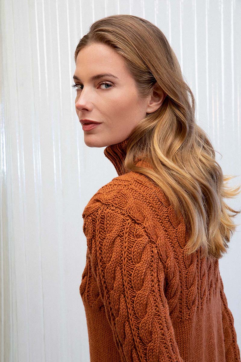 Les explications pour tricoter le pull à torsades laine Merino + de Lang Yarns