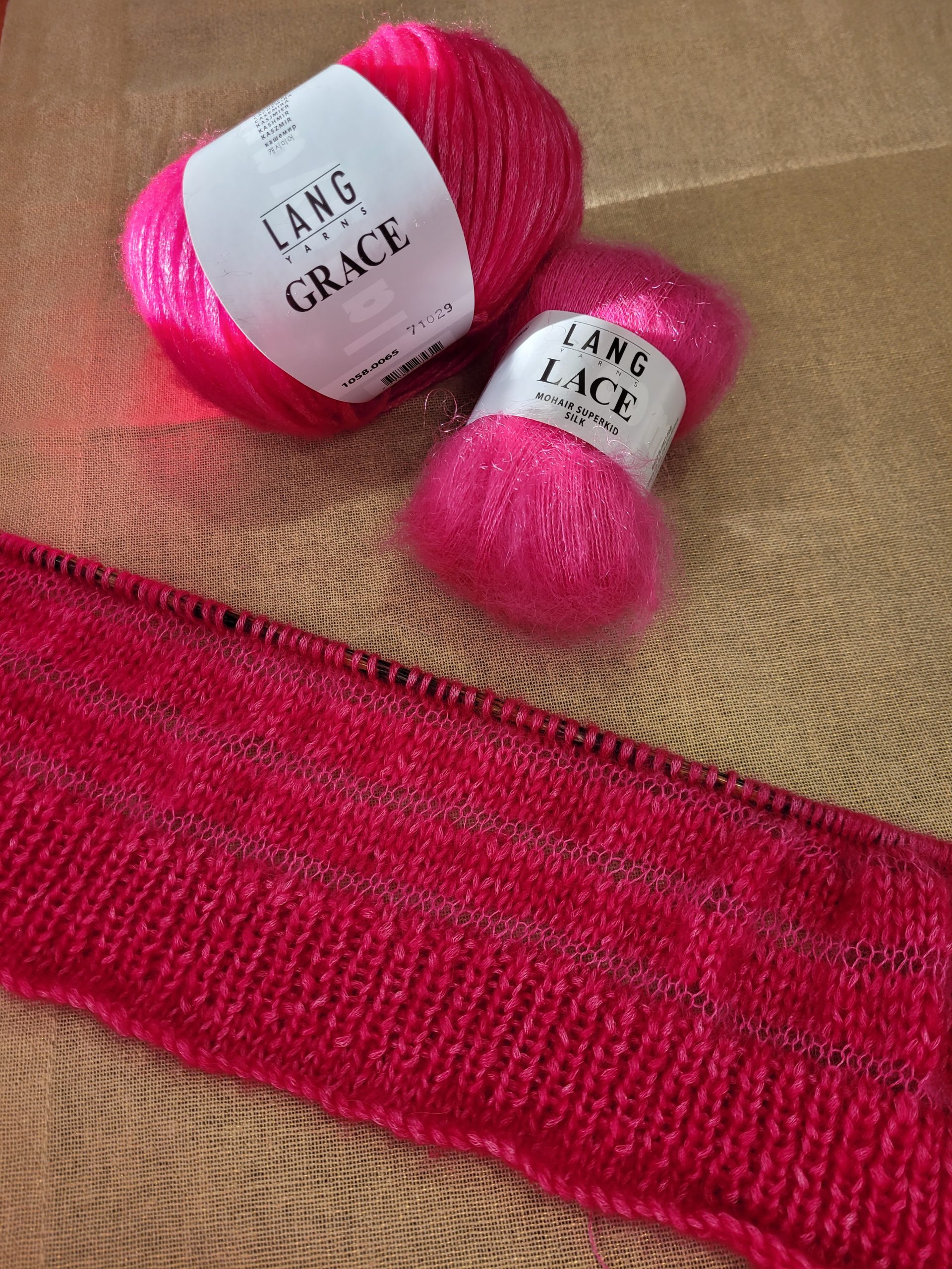 💟 J’ai débuté en Mars 2022, un combo pull et écharpe en laine Grace et Lace de Lang Yarns 🧶, dans un coloris très flamboyant ! 🌷 C’est un joli rose fuchsia, idéal à porter avec une tenue blanche ou bien un jean pour suivre la tendance « chic-décontractée » 👖. Idéal à la mi-saison, la composition des laines utilisées pour ces deux ouvrages sont, le moins que l’on puisse dire, extraordinaire ! 😍 Nous vous laissons en découvrir plus sur les laines et la réalisation de ce duo pull et écharpe dans cet article… 📃