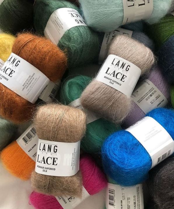 La laine Lace de Lang Yarns utilisée pour ce pull et écharpe
