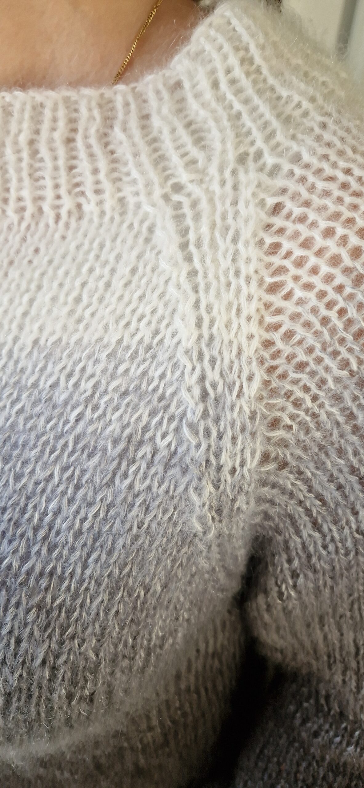 🖤🩶🤍Non pas 1 ni 2 … mais 4 couleurs sont utilisées pour réaliser ce dégradé dans ce pull Lace Lang Yarns laine mohair et soie. 🧶 Il se trouve dans le 📗 catalogue Lang Yarns Punto 48 Top Down, modèle n°1. Attention, ce n’est pas la laine qui fait le dégradé tout seul… 😱 vous voulez savoir comment nous avons réussi à partir de 4 coloris unis à faire ce fabuleux dégradé d’anthracite à blanc pour ce modèle ? 🧐 On vous explique tout, sortez votre laine Lace et vos aiguilles  ! 🖤🩶🤍
