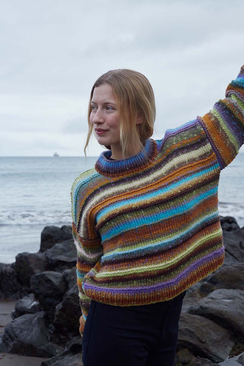 Prévoir 11 pelotes de laine Mystery pour un pull pour homme, 8 pelotes pour femme et 6 pelotes pour un 10 ans.
