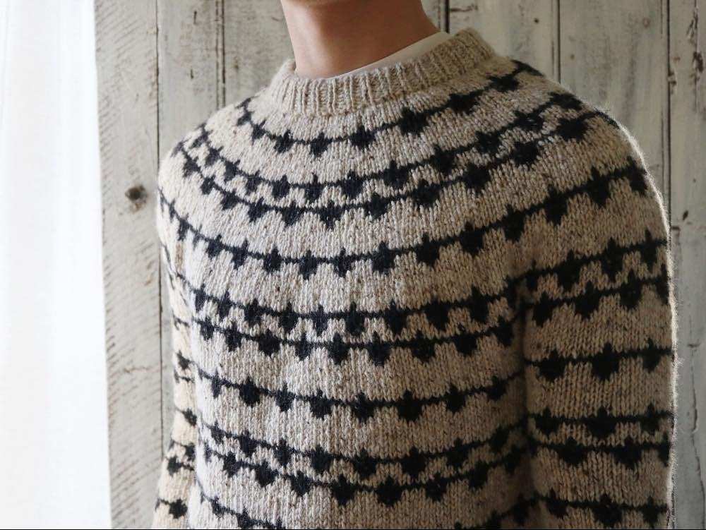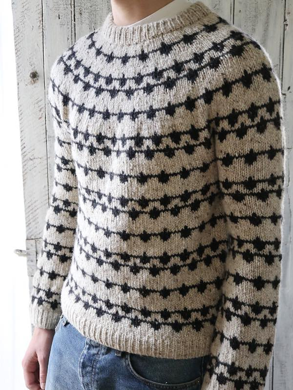 #siwsweaterman présente un motif très simple qui se répète sur le yoke, le corps et les manches. Le motif est facile à tricoter, et on ne travaille qu’avec deux couleurs de fil à la fois.