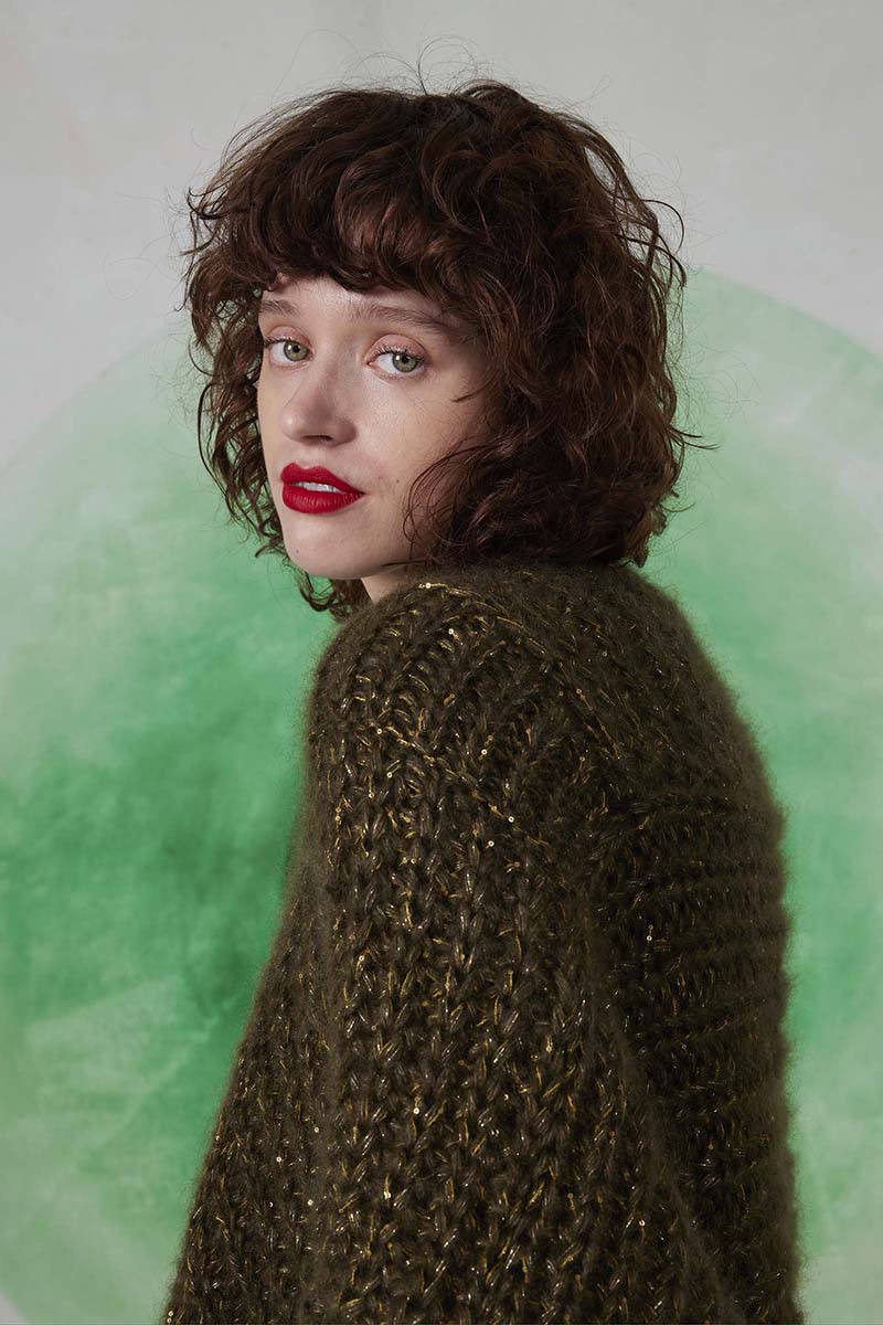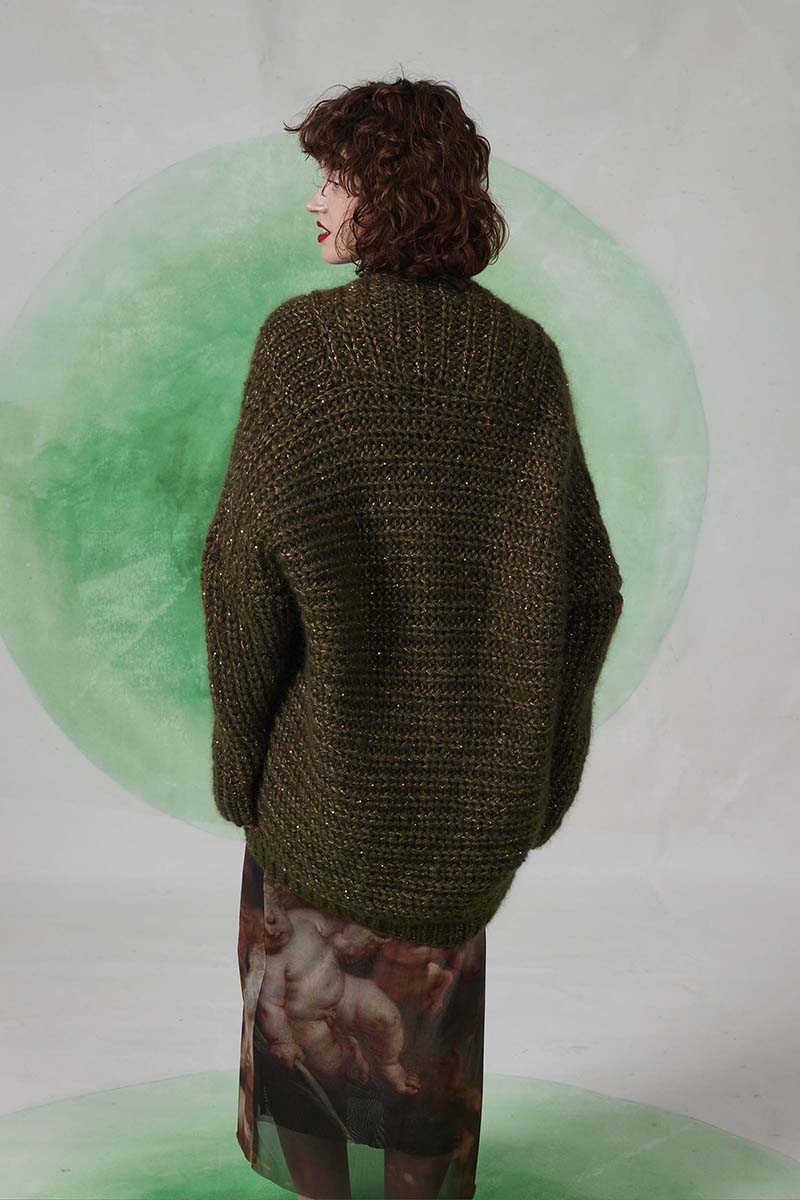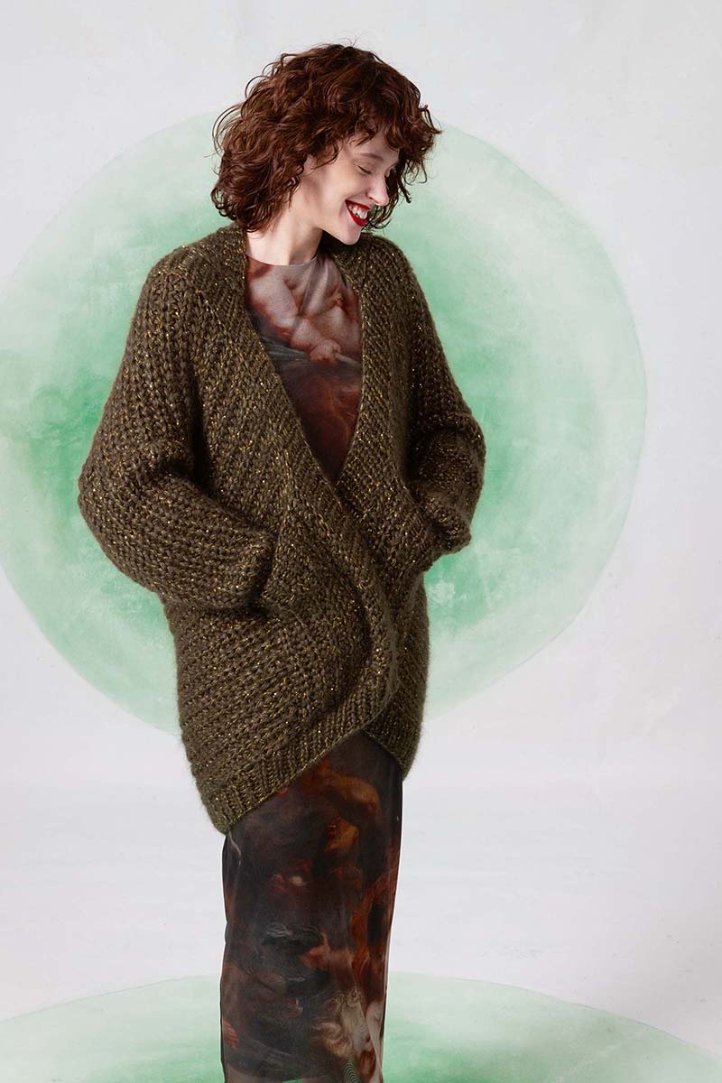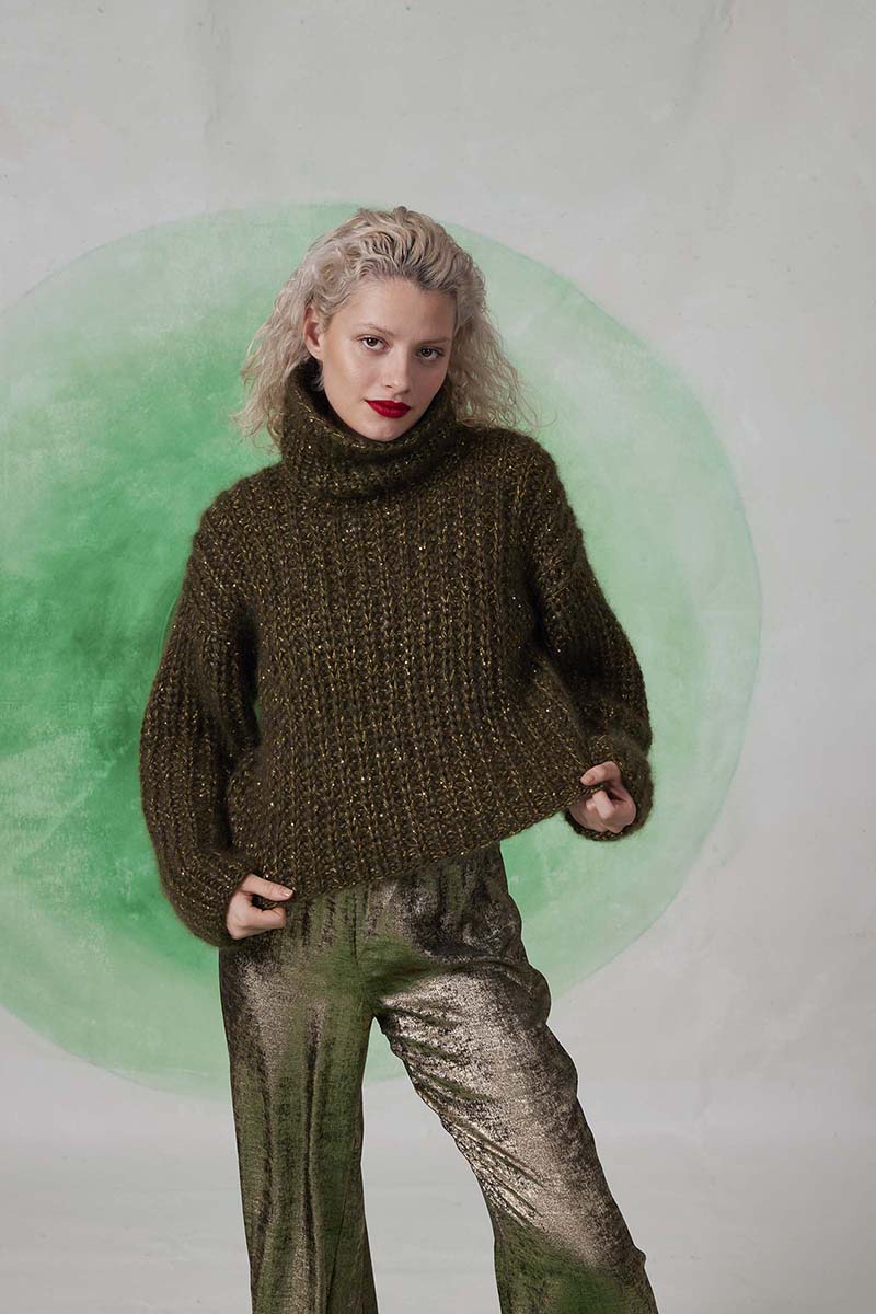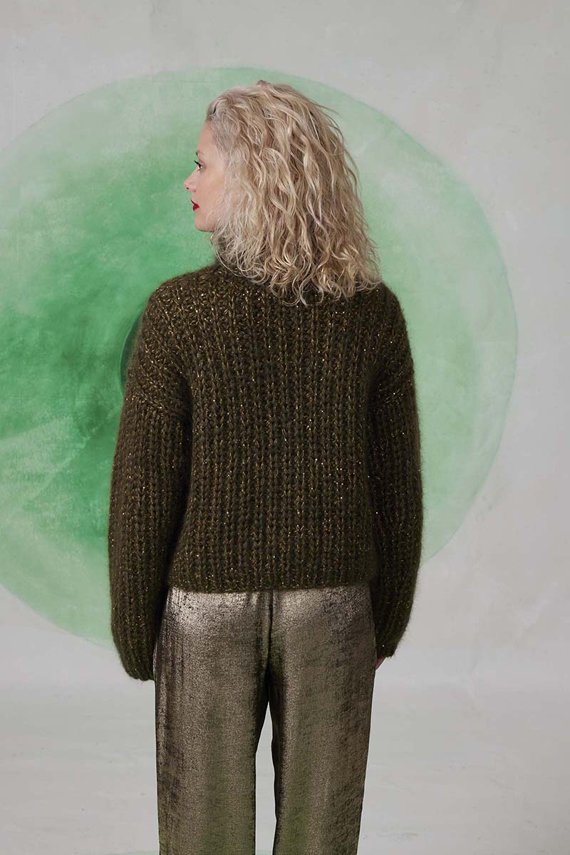 Superbe mohair et soie parsemé d’un discret fil de lamé, pour encore plus de raffinement.