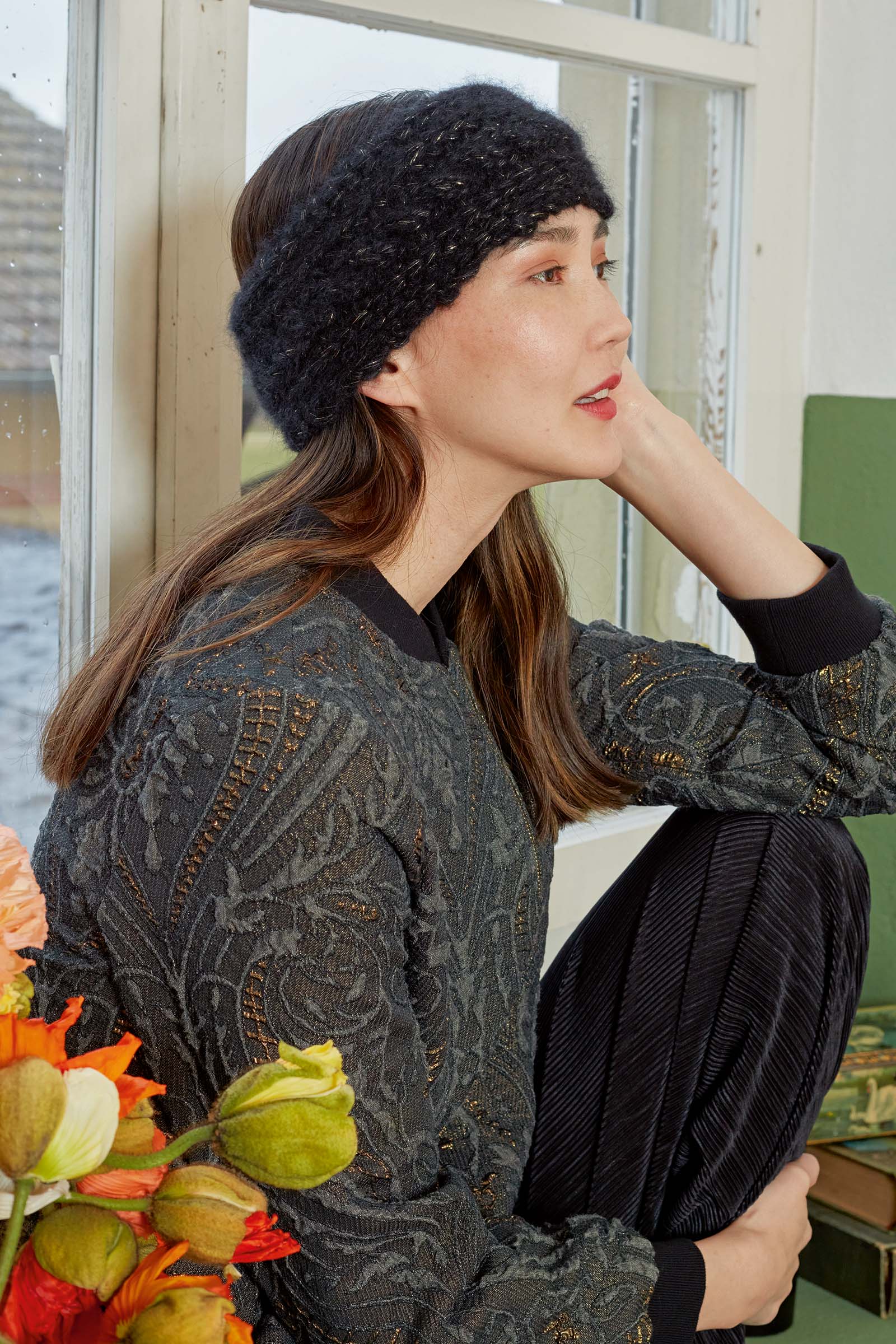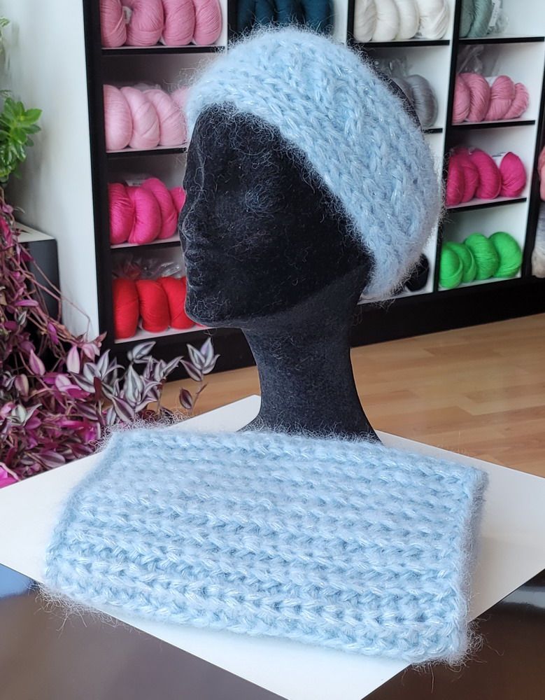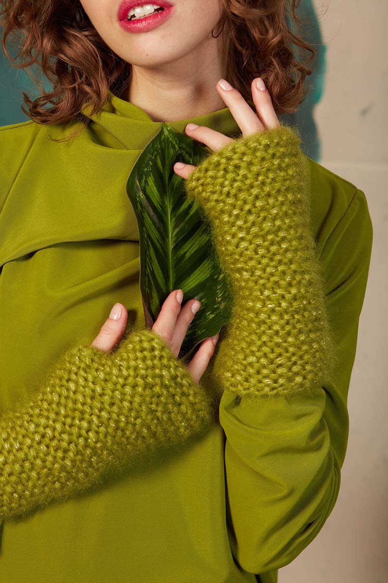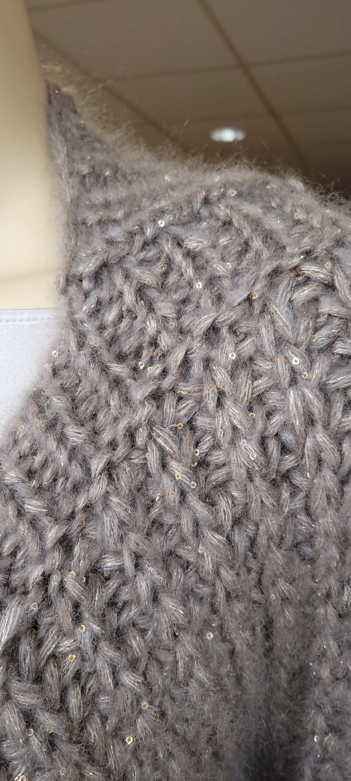 Superbe mohair et soie parsemé d’un discret fil de lamé, pour encore plus de raffinement.