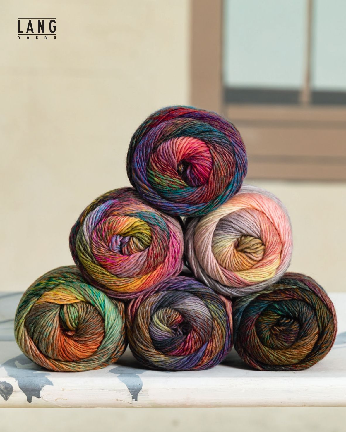 La laine Frida de Lang Yarns est une nouveauté de la Collection Automne-Hiver 2021-2022. Pure laine aux coloris dégradés et chinés. Très douce, elle peut convenir pour toute la famille. Pelote de 100 g. = 220 m. Aiguilles N°4 – 4.5 Echantillon pour 10 cm. = 19 m. et 26 rgs.